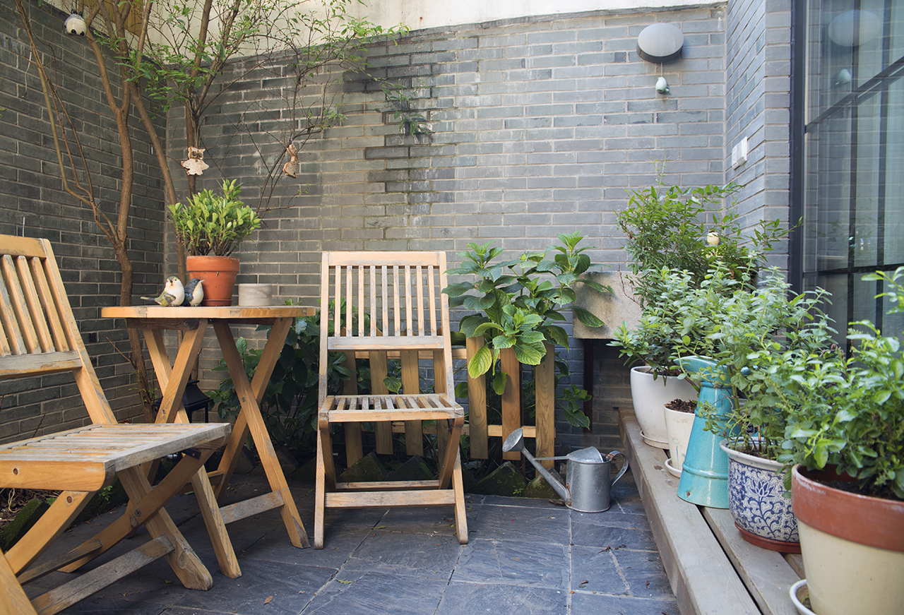It also has a small private, open air courtyard. This is evidently unusual, because these areas are usually covered with a roof. In the old times this is where they used to have a privy in a corner. But Annie loves her outside space that she calls her secret garden, where she has pots of plants, a table and a couple of chairs.