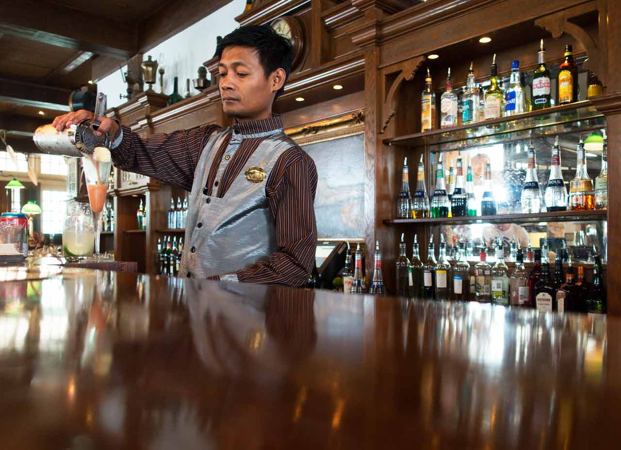 Oh well there’s always a place in the bar so I went there and had a Singapore Sling instead. This classic cocktail was invented by the bartender Ngiam Tong Boon in 1915. At this time women were not allowed to consume alcohol in public. But he cleverly thought out a way to create a cocktail that looked like fruit juice and so the women could join in on the fun. And now 100 years on they are still flying out of the bar.