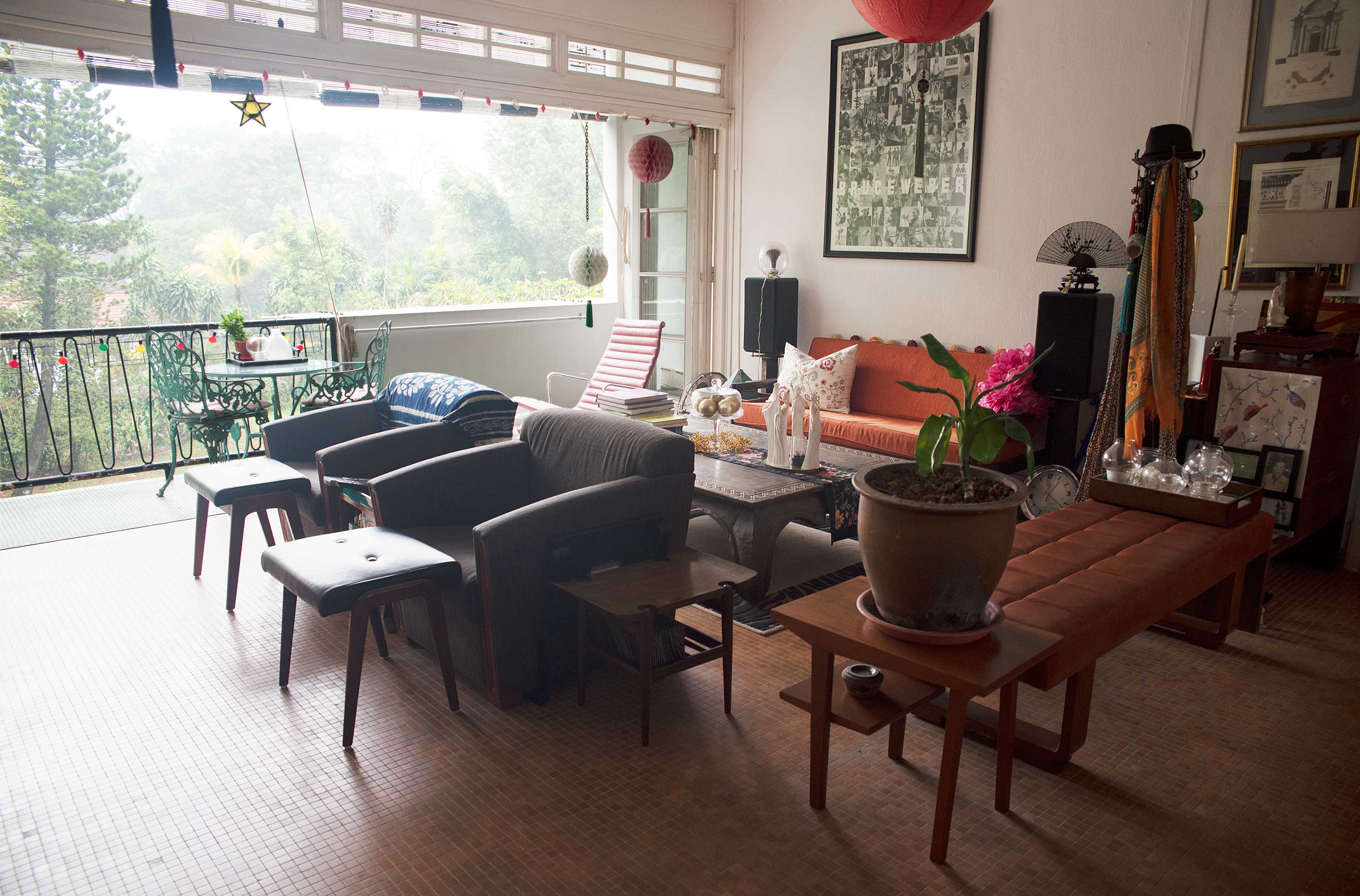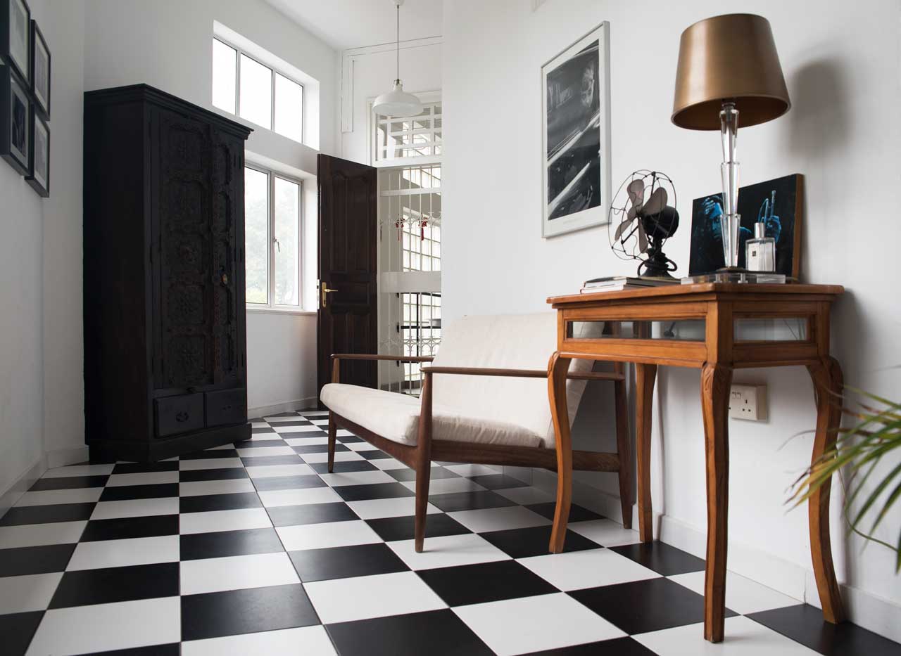 One day I had a photo shoot at the home of Claudette. She lives in a sought after black and white apartment building from the thirties. The name comes from their white walls and dark wood trim. She took over her apartment from an architect that probably wanted to accentuate this, as he tiled pretty much all the floors in the apartment in chessboard black and white. The black and white houses and bungalows have a distinctive part in Singapore’s architectural heritage. They were built from the end of the 19th century until World War 2 as family homes for wealthy British expatriates and have elements of UK’s Arts and Crafts and Art Deco movements.