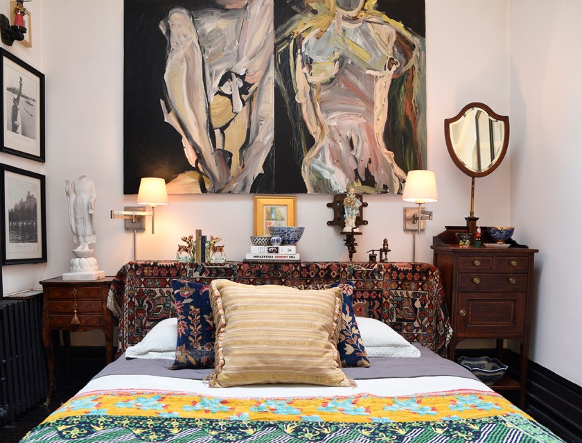 Franklin is at home and as soon as I get through the door they show me around. For an apartment in New York it’s pretty spacious, around 1000 square feet, and consists of three rooms and a kitchen. But it has only one narrow window at the far end of the living room. However, every room is flooded with daylight via skylights in the ceiling. And every single room is filled to the brim with artwork, antiques, sculptures, paintings, artefacts, books and knick-knacks, tastefully arranged and grouped. The oasis these two collectors have created has a wonderful ambience and I’m eager to begin exploring it.