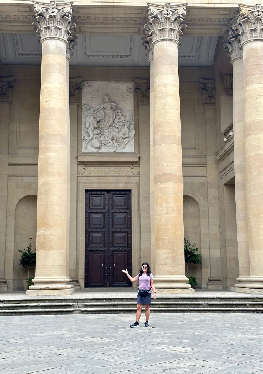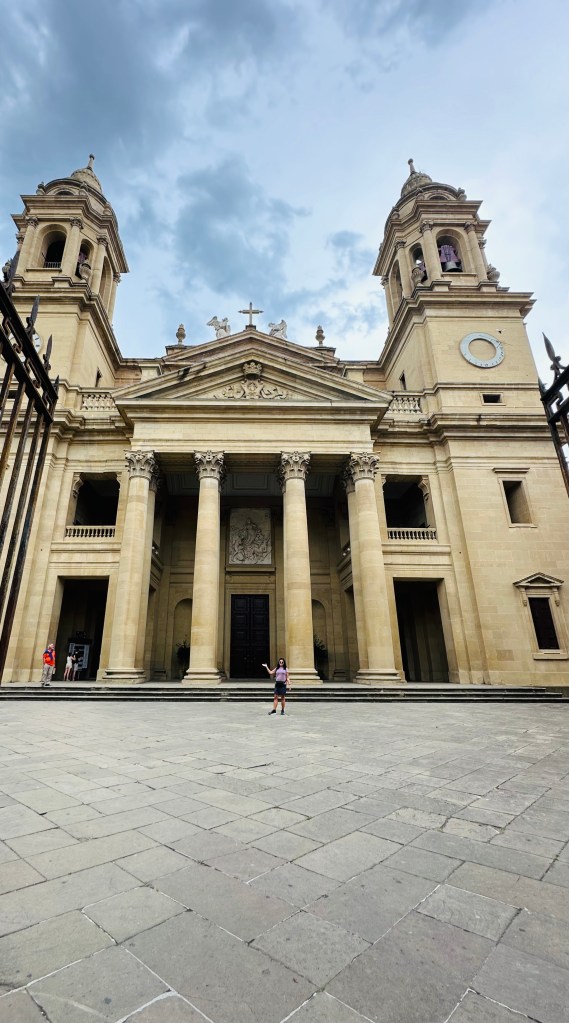Tired as I am, I want to explore the city a bit and at least see the cathedral. I ask a friendly woman outside if she wants to take a picture of me and the cathedral. Sure, she says. I’m intrigued as she starts walking backwards and doesn’t stop until she’s a good distance away. I had a lot of fun looking at the pictures later. Yes, that’s me there, even if I’m barely visible. But she got the cathedral anyway, which is what I had asked her for and I got the whole courtyard in front as well…