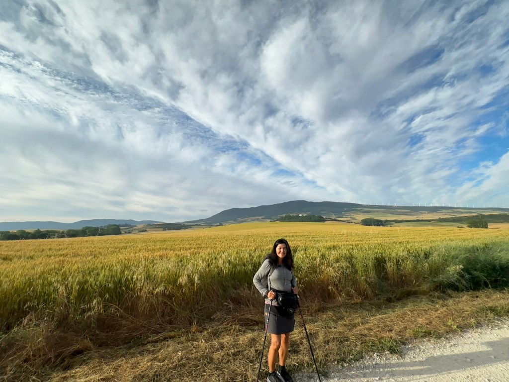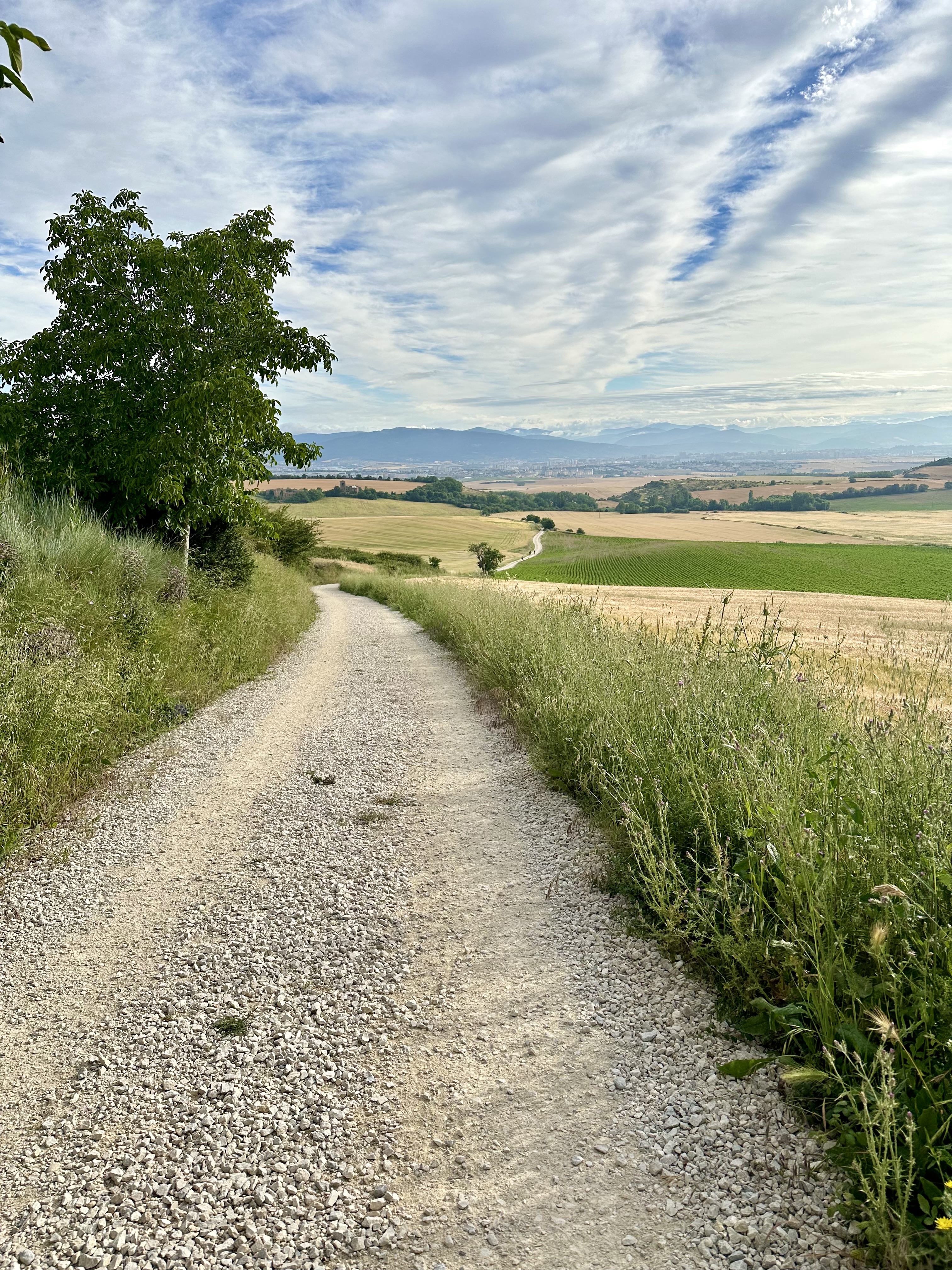 On the camino I often remind myself to stop and look back at the path I’ve walked. It’s a metaphor we can all apply in life, especially when it feels like a struggle, to look back at what we have accomplished to remind ourselves how far we’ve actually come. Here I’m looking back at Pamplona in the distance.