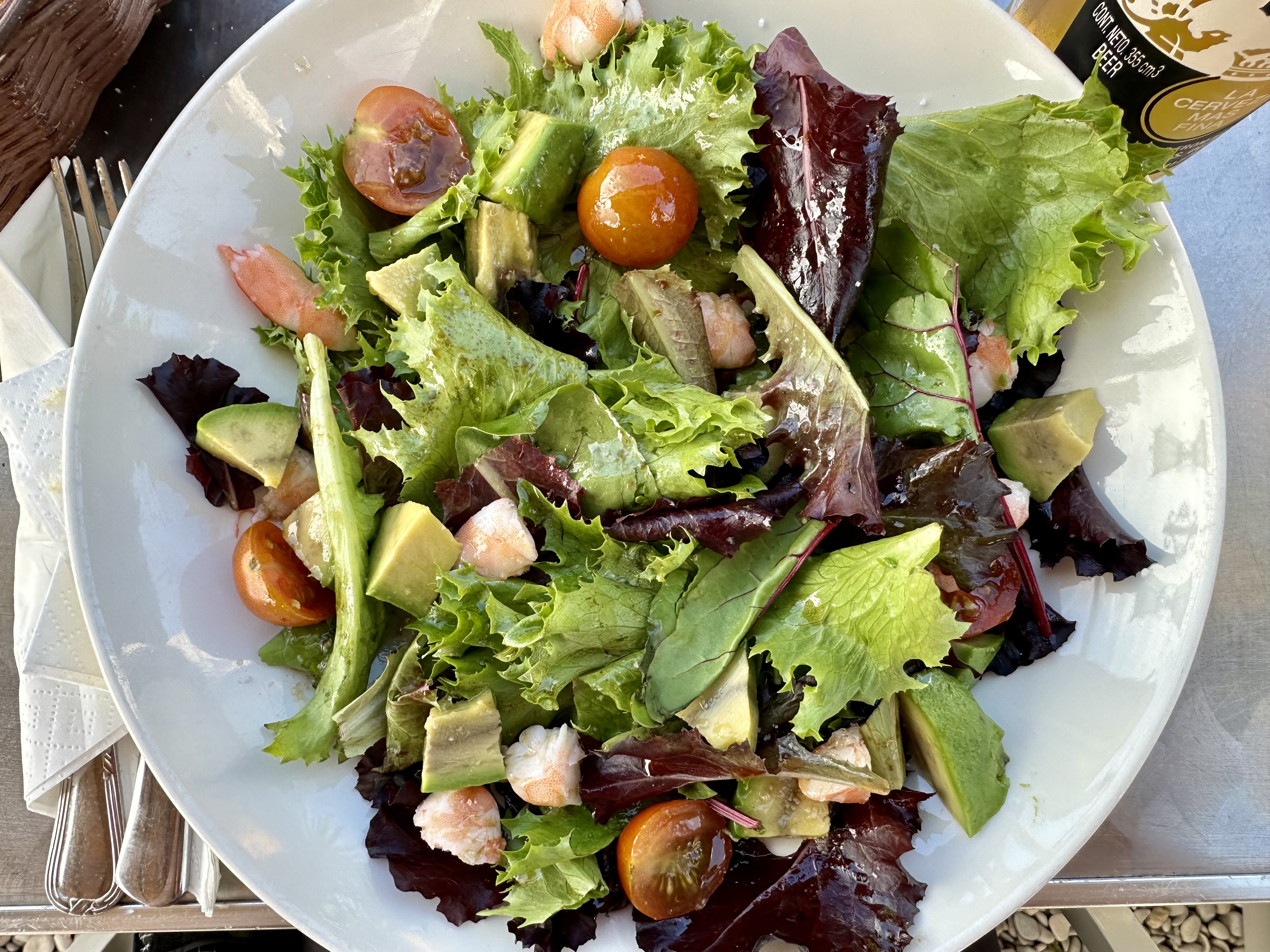 This is the reward! I meet Megan and Jocelyn from the States on the way down, and we continue together to a great restaurant in the hamlet of Uterga where I savour this delicious sallad, the very first and sadly the very last of it’s kind. I never have another one like this which is strange, as I frequently enjoyed fresh salads like this one on the camino last year.