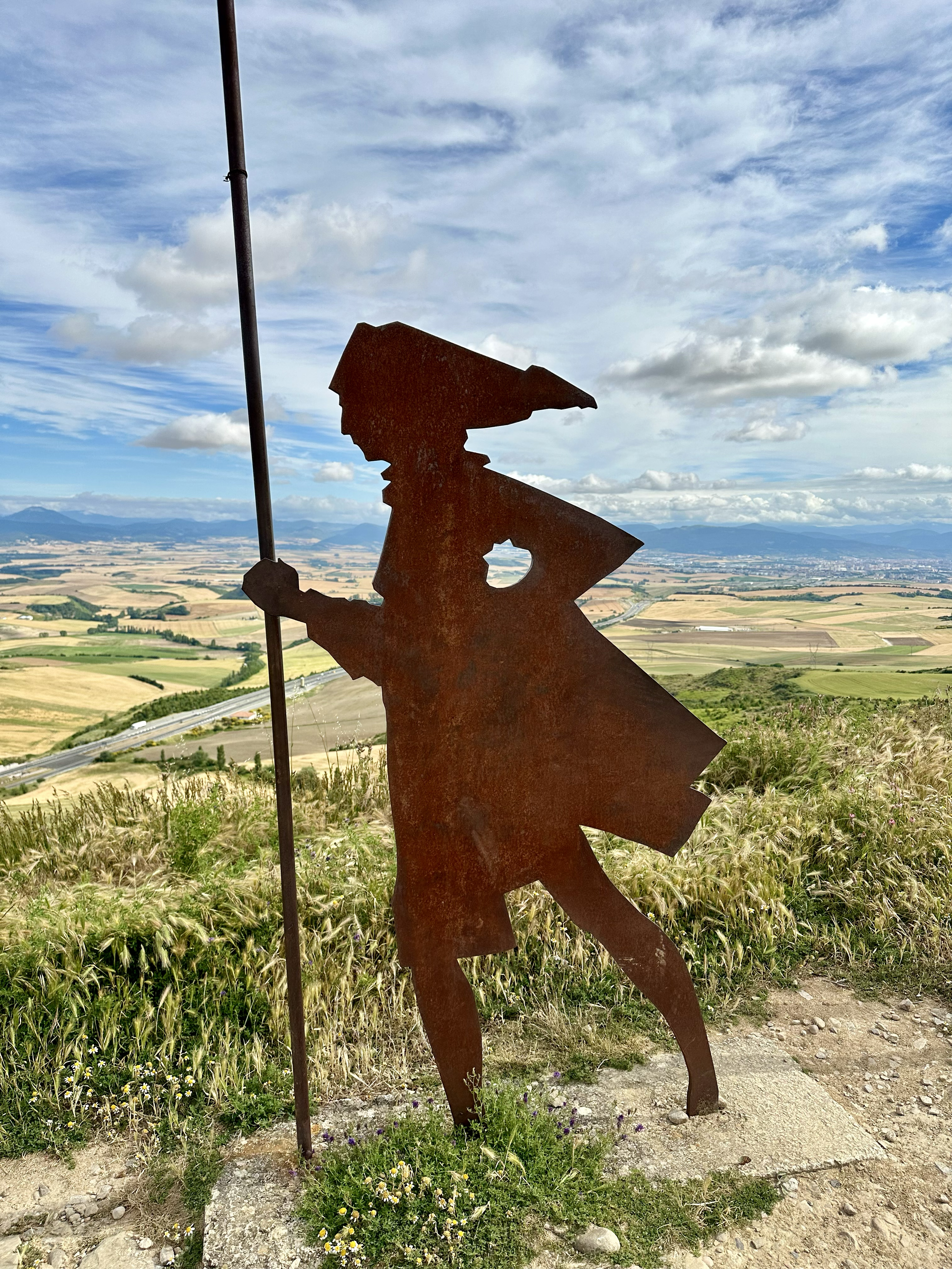 The iconic row of iron silhouettes of medieval pilgrims on the top of Alto de Perdón have an inscription: “Where the way of the wind crosses the way of the stars.”“Donde se cruza el camino del viento con el de las estrellas.”